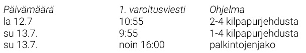 Kilpailun viimeisenä päivänä ei anneta varoitusviestiä klo 14:00 jälkeen.